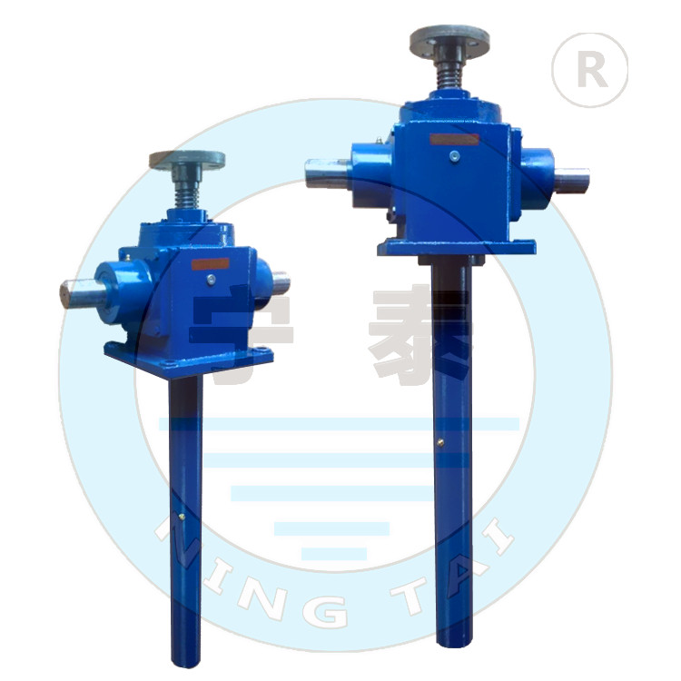 錐齒輪升降機(jī) 可廣泛用于機(jī)械、冶金、建筑、水利、化工、醫(yī)療、文化衛(wèi)生等各個行業(yè)。如:機(jī)械加工上重壓緊固裝置升降臺、翻轉(zhuǎn)裝置及塑料加工機(jī)械等;安裝和維修用爬梯和工具升降架、機(jī)車維修升降臺位;軋機(jī)滾道間隙調(diào)整、棺材或板材送位置的調(diào)整;鑄造啟?;蚧炷聊猎煨?;冶煉方面用于調(diào)整電極、熱液體澆鑄;建筑方面用于移動設(shè)備和組合成品的模板,可升降的窗戶、墻壁、圍墻等;文化衛(wèi)生方面可升降舞臺、調(diào)整游泳池池面高度、調(diào)整手術(shù)臺高度;水利方面用于水庫的閘門和保護(hù)板;科研方面用于不能用人力調(diào)整的運(yùn)動等。特適用于大型的升降平臺。