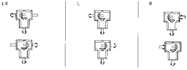 ARA系列螺旋錐齒輪轉(zhuǎn)向箱軸配置、旋轉(zhuǎn)方向關(guān)系及傳動(dòng)能力表