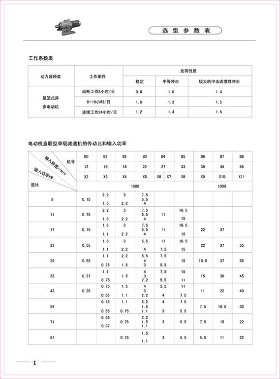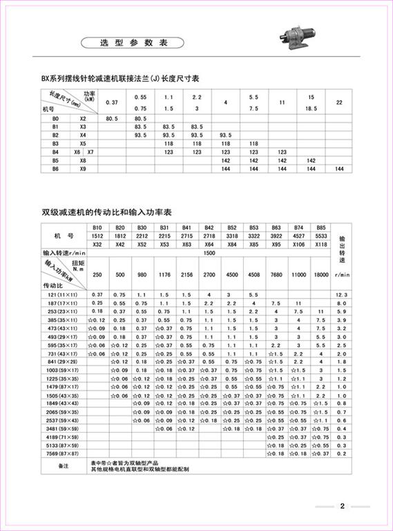 減速機|擺線針輪減速機-B、X系列擺線針輪減速機選型參數表-海洋傳動