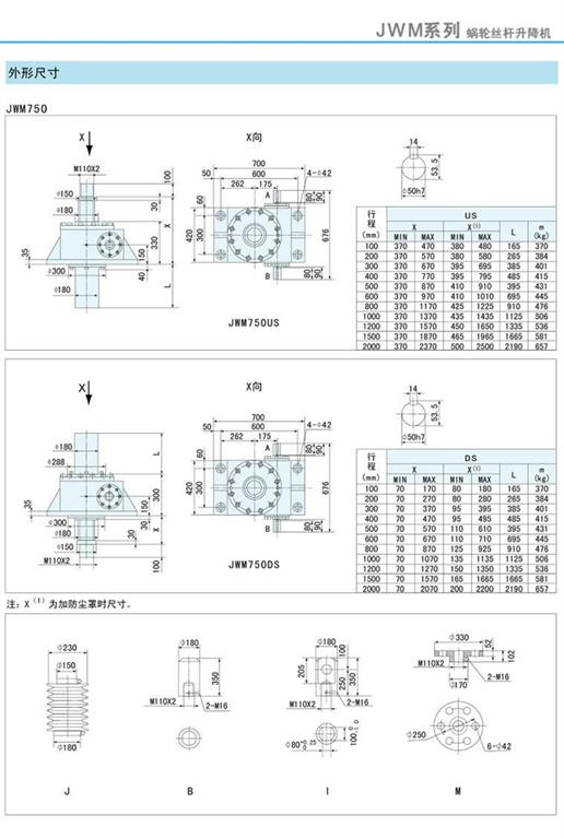 減速機(jī)|蝸輪絲桿升降機(jī)-JWM升降機(jī)750、1000外形尺寸圖-海洋傳動(dòng)
